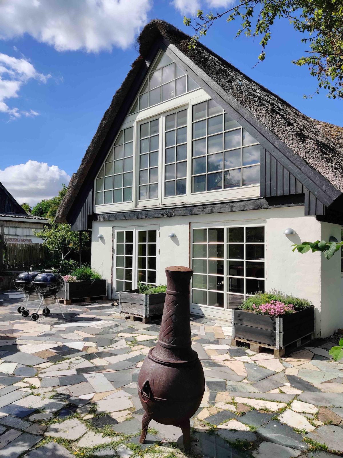 Mājīgs mājoklis klusā vietā ainaviskā apkārtnē. 3 minūšu gājiena attālumā līdz autobusam un 10 minūšu brauciena attālumā ar autobusu līdz pilsētas centram. Māju rotā pārstrādātas mēbeles, un to raksturo minimālisma miers dekoros. Viesistabā ir divas guļamistabas ar divām divguļamajām gultām, viena istaba ar divām vienguļamajām gultām, kā arī liela dīvāngulta. Ideāli piemērots ģimenei, tā piedzīvos Orhūsas jauko pilsētu, arhitektūru un vēsturi. Ir vieta, kur ņemt līdzi suni, ja arī suns ir jāizbojā