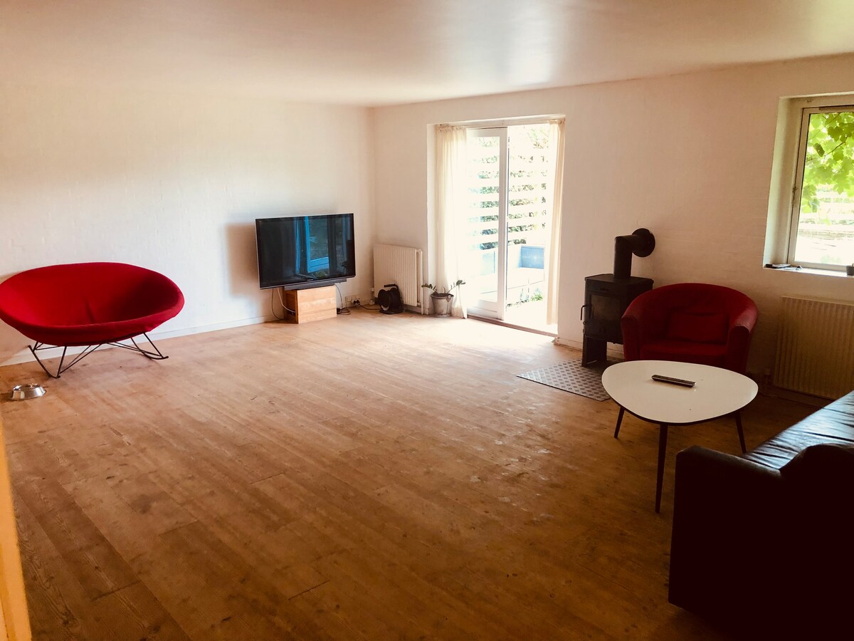 Laipni lūdzam romantiskā un krāsainā veselā 2 guļamistabu dzīvoklī klusajā Risskov/Vejlby, kas ir ideāli piemērots gan pāriem, gan atsevišķiem ceļotājiem, gan nelielām grupām. Liela dzīvojamā istaba ar daudz gaišu, krāsainu un mājīgu dekoru, balkonu ar saulrietu un ainaviskiem skatiem. Saullēktu var baudīt no guļamistabas un virtuves. Dzīvoklī ir pilnībā aprīkota virtuve, Wi-Fi, televizors un vieta mājas darbiem. King izmēra gulta un 2 dīvāni. Tuvu laba iepirkšanās, bezmaksas autostāvvieta un ērta piekļuve Orhūsai ar autobusu.