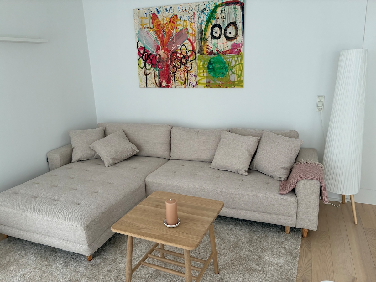 Mājīgs dzīvoklis Orhūsā. 3 guļamistabas, visās 3 ir divguļamā gulta. Vannasistaba ar dušu, mana mīļākā telpa, izturieties pret to ar mīlestību. Ir balkons, kurā var baudīt rīta kafiju un sauli. Privāts dzīvoklis, kas pilns mākslas, dizaina un mīlestības. Es šeit dzīvoju, tāpēc manas mantas ir šeit, kad jūs šeit dzīvojat. Es dodu priekšroku pāriem, ģimenēm un kolēģiem, bet jūs esat laipni gaidīti. Vienkārši nosūtiet man ziņojumu un nedaudz pastāstiet par sevi. Pilsētā un sabiedriskais transports tieši aiz durvīm.