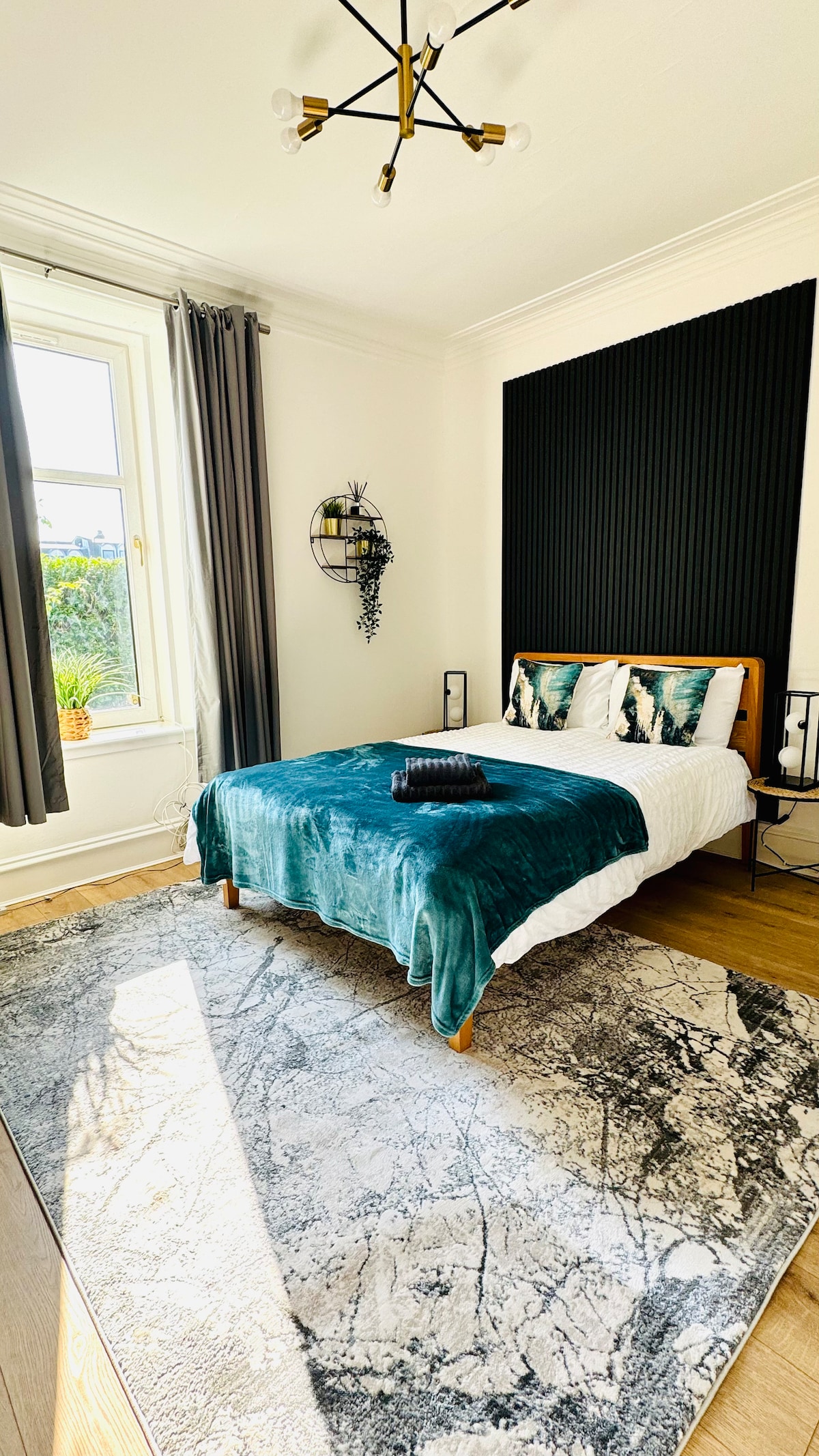 Atpūtieties šajā mierīgajā, stilīgajā mājoklī. Dzīvoklis ir veidots ar neticamu uzmanību detaļām, un tas atrodas klusā ielā, tikai īsas pastaigas attālumā no pilsētas centra, veikaliem un restorāniem. Viesmīlīgajā dzīvojamajā telpā ir skaistas sienas paneļi, darba vieta/ēdamistabas stūrītis un pilnībā aprīkota virtuve. Plašajā guļamistabā ir daudz vietas mantu glabāšanai, fēns un gludināmais dēlis. Vannasistabā ir veļas mašīna. Īpaši ātra platjosla. Gāzes centrālā apkure. Licence AC53061F
