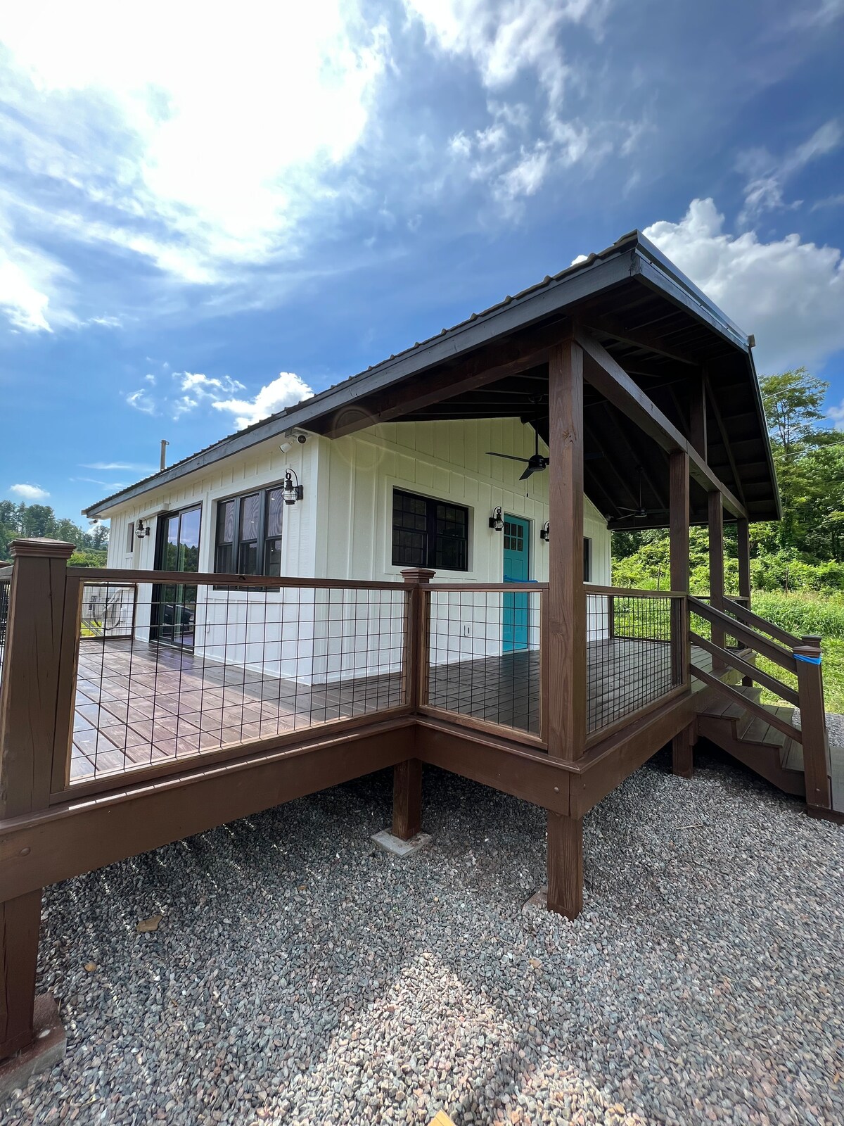 Tagad ātrgaitas internets! Mūsu mājīgā, atjaunotā trīsstāvu A-veida kotedža atrodas 6 akru platībā, kas klāta ar mežu, privātā kalnu upes līcī netālu no Damaskas, Virdžīnijas štatā, klinšu ieskautā, foreļu pilnā South Fork Holston upes priekšā.Kotedžā ir 3 plašas guļamistabas, katra savā stāvā; pilnībā aprīkota virtuve; liela istaba; ēdamistaba; veļas mazgātava; un otrā stāva bēniņi ar piekļuvi 16 pēdu platam balkonam.20' x 12' klājs piedāvā vietu atpūtai un maltītēm brīvā dabā, un tas ir atvērts pagalmam ar ugunskura vietu.