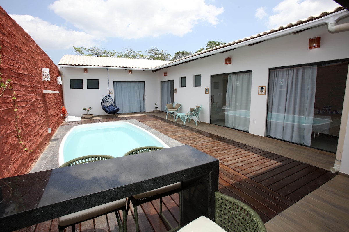 Mūsu bungalo atrodas Tatajubas pludmalē, un tajā ir baseins, virtuve un nepārspējams skats uz kāpām un okeānu. Tiem, kuriem patīk daba un saulriets, šī ir ideāla vieta ar tiešu piekļuvi pludmalei. - Piedāvājam kvadraciklu un fatbike nomu. - Mēs piedāvājam kaitsērfinga pakalpojumus mūsu Ohana Kitesurfing Club skolā (nodarbības, noma, lejupvējš utt.) - Īpašnieki dzīvo galvenajā mājā un vienmēr ir pieejami.