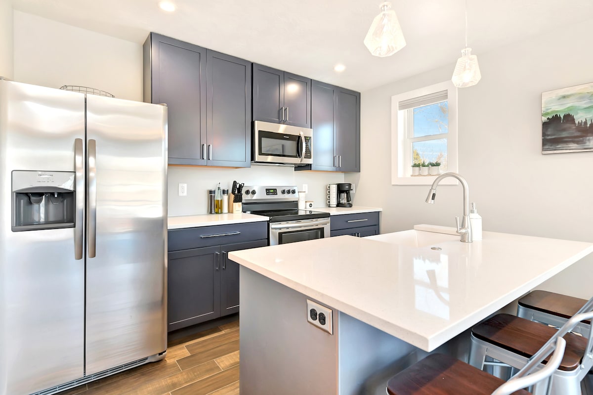 Gaumīgi atjaunots moderns, plašs un pilnībā savrups viesu nams, kas atrodas jūdzes attālumā no Boisas centra un ½ jūdzes attālumā no Boise baltā ūdens parka. Ideāla bāzes nometne jūsu piedzīvojumiem Boisī un mierīgs patvērums pēc jautrām dienām, pastaigājoties pa tuvējo zaļo jostu, dodoties pārgājienos/riteņbraukšanā pakājē vai iepazīstot Boisī centru. Gatavojiet virtuvē vai pastaigājieties uz tuvējiem restorāniem maltītēm. Iedzeriet rīta kafiju uz terases, kamēr plānojat nākamo piedzīvojumu.