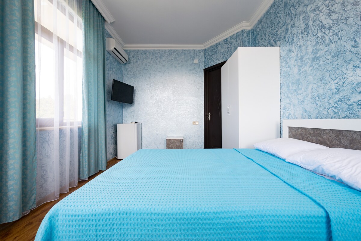 - Mūsu mājā ir 12 ērtas, tīras un mājīgas istabas (šī iemesla dēļ Airbnb vietnē ir izveidoti vēl 7 identiski mājokļi, istabas atšķiras tikai ar istabas grīdu, skatu uz jūru un pilsētu, aizkaru un sienu krāsām. - Mūsu māja atrodas zaļā zemesraga teritorijā, 7 km attālumā no Batumi centra. Jums patiks, ka māja ir pavisam jauna, mums ir nevainojama tīrība, svaigas, mājīgas un jaunas istabas.