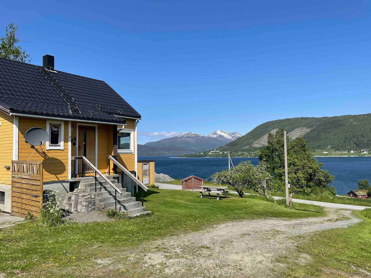 Schønes Ferienhaus mit herrlicher Aussicht auf Fjord und Berge . Das Haus verfuegt ueber eine Fussbodenheizung im Erdgeschoss, grosser Wohnkueche, Bad mit Dusche und Waschmaschine ,Wohnzimmer mit Sat TV, Schlafraum mit 4 Betten und einer Terasse mit Blick auf vorbeifahrende Kreuzfahrtschiffe. Es ist der perfekte Ausgangspunkt , um Norwegens schønste Sehenswuerdigkeiten zu besuchen. Dazu gehøren die Trollstigen , Trollveggen ,Geirangerfjord, Atlantikstrasse,Rosenstadt Molde und Ålesund.