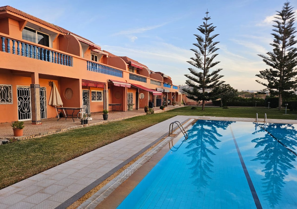 Lieliska augsti stāvoša riāda ar nelielu peldbaseinu, burbuļvannu (3 * 4 m). no kura paveras netraucēts skats uz okeānu. Sastāv no 4 apartamentiem, terases, aprīkotas virtuves, kas atvērta lielai viesistabai. Jaunākā paaudzes TV savienojums, Netflix, YouTube. Atrodas klusā, drošā vietā un netālu no maziem veikaliem, pludmalēm, golfa, lielās souk el Had, kafejnīcām un restorāniem, atpūtas centra. Ideāli piemērots brīvdienām kopā ar ģimeni vai draugiem. Diennakts lidostas transfērs pēc pieprasījuma.