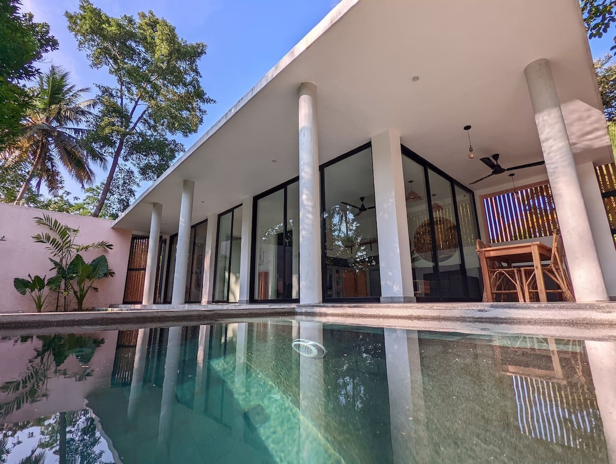 Unikāla dizaina un stila džungļu bungalo ar mezonīna tipa guļamistabu, vienu vannasistabu un virtuvi. Tās iedvesmas avots ir sīkmājiņas koncepcija. Ārtelpās ir privāts baseins un grils. Izbaudiet dabas mieru, atrodoties tikai 5 minūšu gājiena attālumā no Indijas okeāna un dažām no slavenajām Šrilankas pludmalēm un sērfošanas vietām, tostarp Kabalanas pludmales. Mūsu filozofija ir vienkārša: nodrošināt privātu, mierīgu un iedvesmojošu telpu, vienlaikus daloties mīlestībā pret dizainu un dabu.