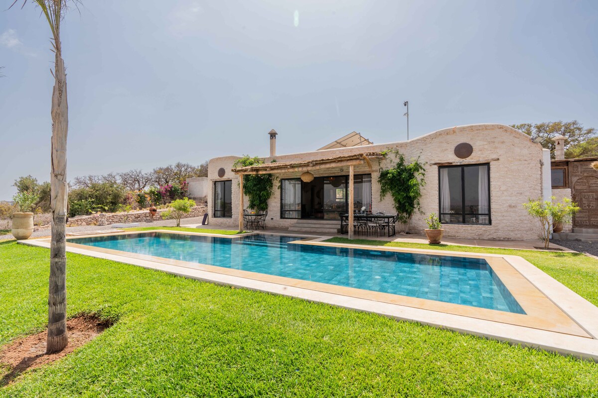 Burvīga ģimenes villa, 2 līmeņu, neatkarīga, plaša, labi apgaismota, liels privāts baseins 75 m² platībā un skaists dārzs. Tā atrodas laukos, 16 km attālumā no Essaouiras Sidi Kaouki rajonā, un tam ir grezna apdare, skurstenis, atklāta ugunskura vieta dārzā, olīvkoki un augļu koki un divas skaistas terases ar pergolām. Moderns un mierīgs. Lidosta 6,5 km attālumā un veikali un lielveikals 10 minūšu attālumā. Lai pārvietotos, jums būs nepieciešams transportlīdzeklis.