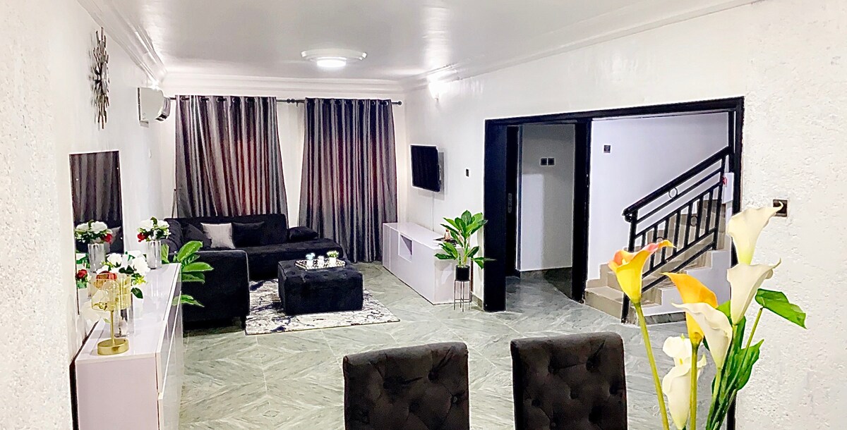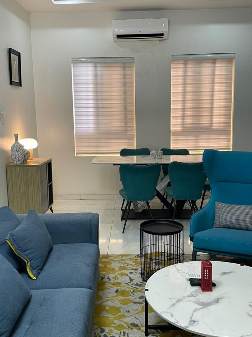 Lekki-Ajah retreat! This spacious 4-bedroom, 4.5-bath duplex is fully furnished for comfort and style. Enjoy open living and dining spaces, a modern kitchen, and cozy bedrooms with ample storage. Relax in a secure, vibrant neighborhood close to restaurants, shops, and beaches. Perfect for families, friends, or business travelers seeking convenience, luxury, and a true Lagos experience. . High-speed Wi-Fi, air conditioning, and modern appliances make your stay convenient and enjoyable.
