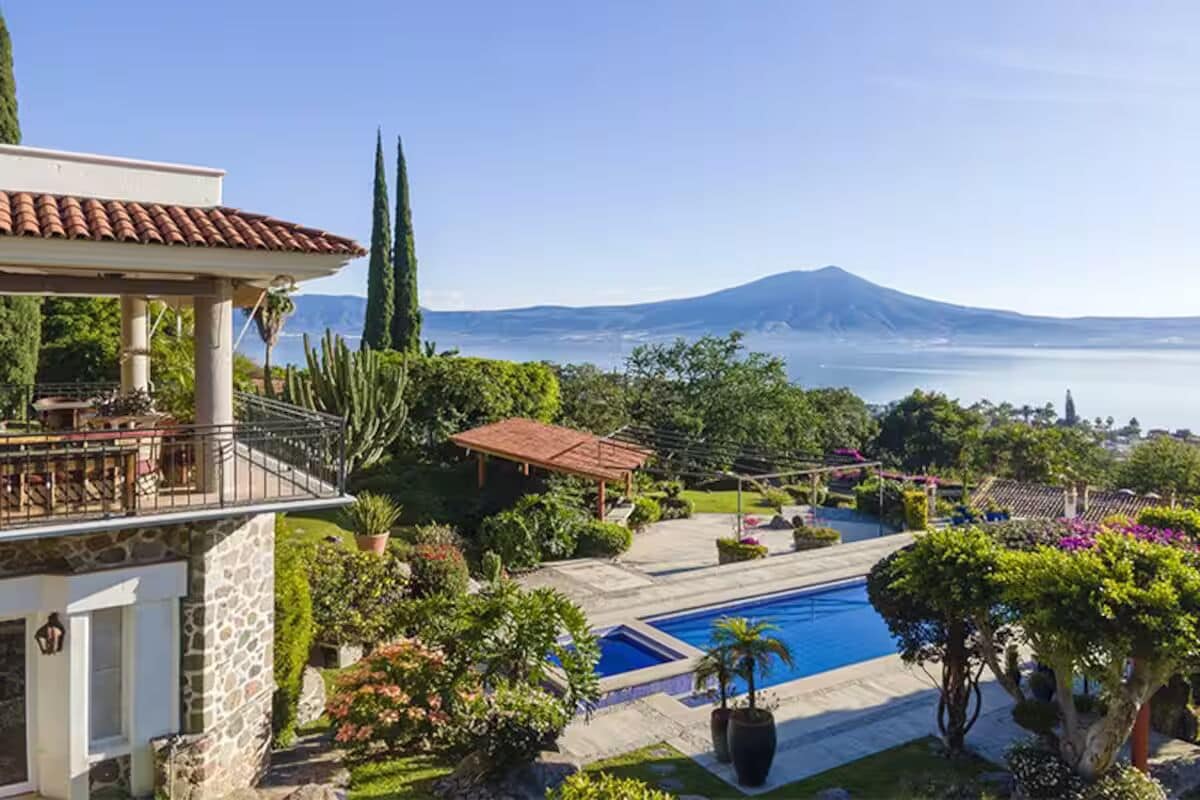 Villa de lujo con piscina privada y climatizada, es una RESIDENCIA muy acogedora enclavada en la montaña con una vista espectacular al Lago de Chapala, ideal para familias, amigos, compañeros disfruta la tranquilidad y el confort de una residencia que está cerca de todo en una zona privilegiada, en un EXCLUSIVO fraccionamiento con caseta de vigilancia las 24 horas, este es tu refugio perfecto, cuenta con una súper cocina equipada y bonita internet para trabajar, estacionamiento y jardines