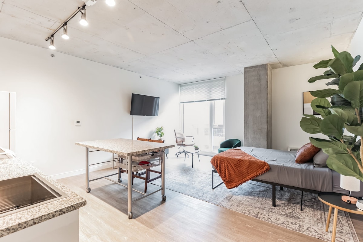 Izbaudiet modernu dzīvi Skyline 776, ko piedāvā LiveSuites Klīvlendas centrā. Mūsu modernie īres mājokļi piedāvā komfortu un ērtības populārāko apskates vietu tuvumā. Ir pieejami vairāki stilīgi mājokļi, jūsu mājoklis var nedaudz atšķirties, bet būs vienlīdz labi iekārtots. Izbaudiet teātri, saunu un jumta kluba telpu. Iekļauta droša autostāvvieta. Lūdzu, ņemiet vērā: darba dienās var rasties celtniecības troksnis.