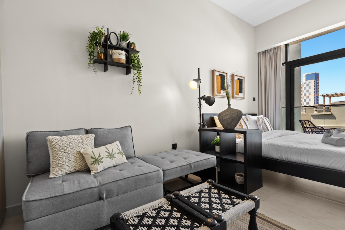 Enquire now for relocation and long-term stay discounts! Settle into comfort and style in this modern 1-bedroom apartment in central Dubai. Wake to skyline views, enjoy natural light in the airy living area, and cook in a fully equipped kitchen. It is located near top shopping, dining, and attractions and is perfect for couples, solo adventurers, and business travelers. Whether you're here to relax or explore, enjoy Dubai with the comforts of home and a touch of luxury. Book now!