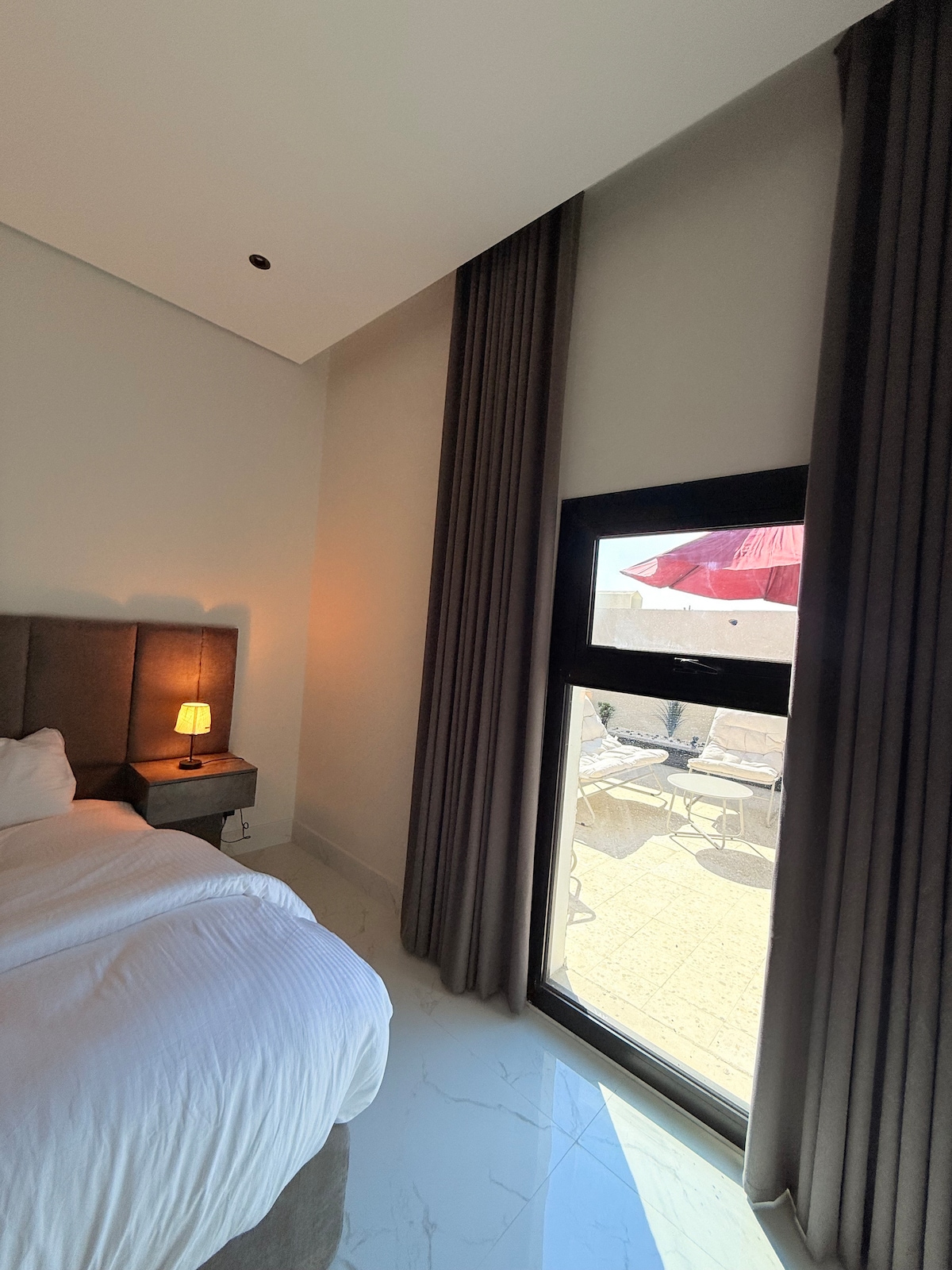Mūsdienīga dizaina dzīvoklis ar guļamistabu un dzīvojamo istabu Tajā ir guļamistaba ar galveno gultu ar viesnīcas matraci un plaša telpa ar 60 collu viedtelevīziju, ko atbalsta Netflix abonements Aprīkots ar ledusskapi, kafijas bāru un tēju Tējkannas un tējas rīki Pilnībā aprīkota vannasistaba papildus bezmaksas ātrgaitas internetam. Dzīvoklī ir augsts privātums. Al Rayyan rajonā ir arī lifts un privāta autostāvvieta