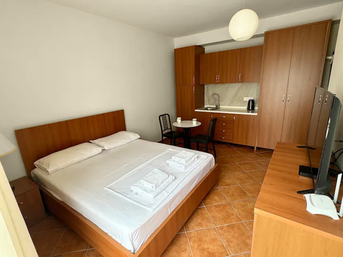 Laipni lūdzam mūsu burvīgajā studijas tipa dzīvoklī, kas atrodas pašā Tirānas sirdī, Albānijā! Mūsu mājīgās telpas, kas ir ideāli piemērotas individuāliem ceļotājiem vai pāriem, piedāvā visu, kas nepieciešams ērtai dzīvošanai šajā dinamiskajā pilsētā.