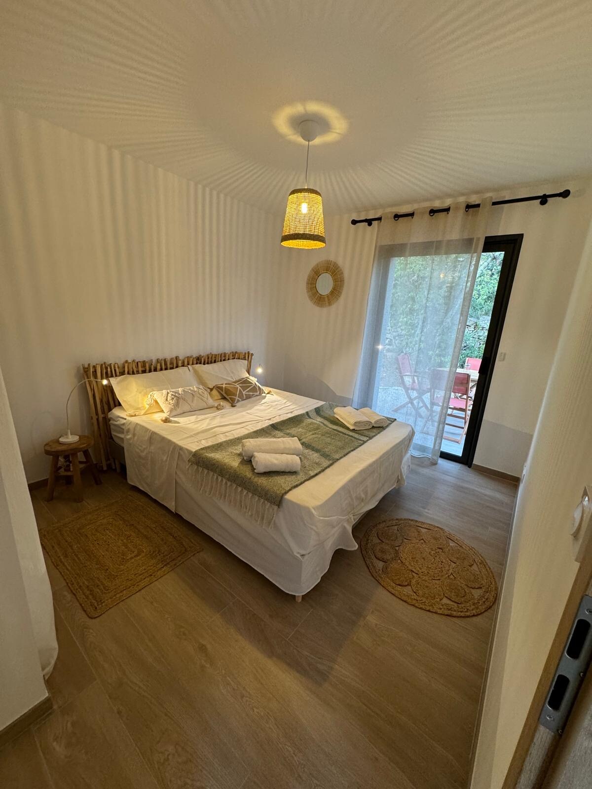 Mūsu rezidencē pie jūras, Maranatha Porto Vecchio, mēs piedāvājam vairākas atsevišķas villas, kurām ir kopīgi baseini un dārzs. Mūsu pludmale ir paredzēta tikai mūsu klientiem. Šajā lielajā studijā, kas vērsta uz jūru, ir liela terase, kur var ieturēt brokastis un vakariņas. Aprīkota virtuve, atsevišķa vannasistaba, liela guļamistaba ar 160 platu gultu un vienu vienvietīgu (90). Mūsu pludmalē ir pieejama kopīga burbuļvanna 2 personām. Sundown no džakuzi!