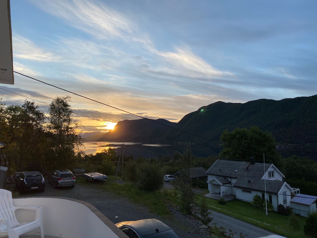 Peaceful neighborhood with several playgrounds, a lake and trails. Short distanse from big mall (Moa 5 min) and downtown Ålesund 12 min. Two bedroom apartment with kitchen, living room and bathroom. You have your own floor and your own private entrance. The garden and a playhouse is shared with us when we are home, but we do respect your privacy. You will have your own parking spot, and it is possible to charge an electric car at no charge (Chademo) Toys, books and tv-streaming is available.