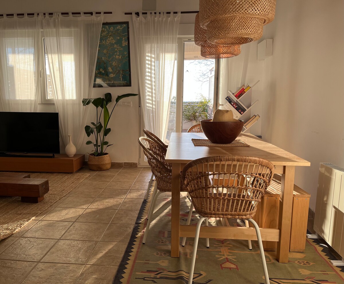 3 stāvu rindu māja ar skatu uz jūru un privātu baseinu ar skatu uz jūru. Atrodas pludmalē ar zilo karogu kvalitātes ūdeni. Dzīvoklis ar verandu, trīs guļamistabām, trim vannasistabām, trim terasēm. Divguļamā guļamistaba ar terasi ar skatu uz jūru. Divguļamā gulta, četras vienguļamās gultas. Veranda ar āra ēdamgaldu ar dīvānu un krēsliem. Ideāli piemērots digitālajiem klejotājiem. Izbaudiet jūras vēju terasē, ēdot Valensijas paelju.