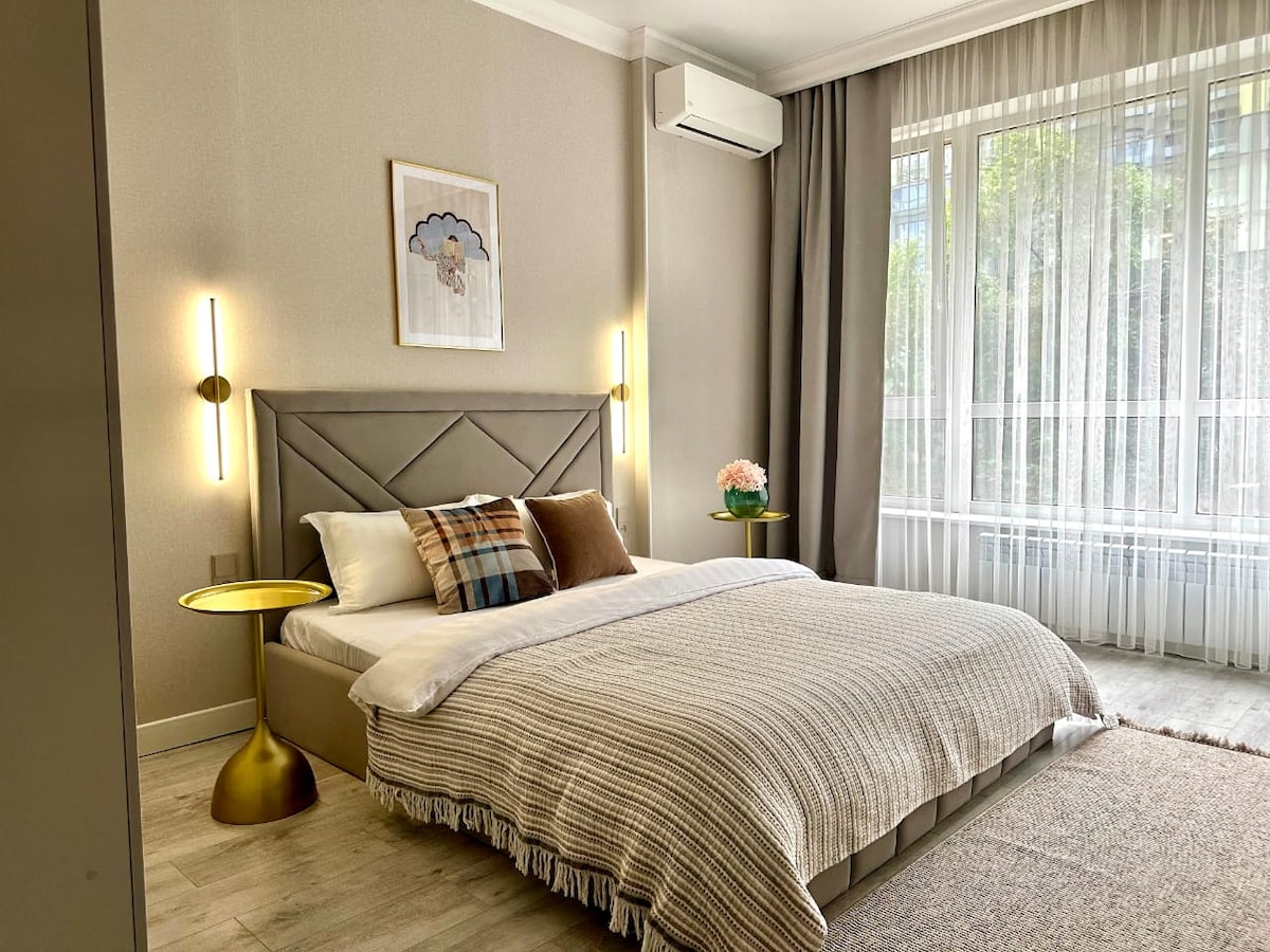 Laipni lūdzam jūsu ideālajā mājoklī Almati! Izbaudiet elpu aizraujošu skatu uz kalniem un pilsētu tieši no sava loga. -7 minūtes līdz metro stacijai - ērta gulta un mājīgs dīvāns - pilnībā aprīkota virtuve - moderna vannasistaba ar svaigiem dvieļiem un tualetes piederumiem - Wi-Fi un SmartTV Dzīvoklis atrodas drošā un dzīvīgā rajonā, netālu no kafejnīcām, lielveikaliem, aptiekām, iepirkšanās centriem! Pieejama pašreģistrēšanās Vienmēr gatavs jums palīdzēt — lūdzu, nosūtiet ziņojumu jebkurā laikā. Atpūtieties, izpētiet, jūtieties kā mājās!