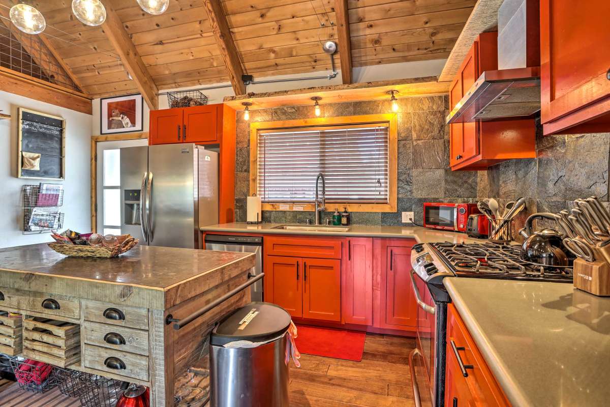 Dodieties uz mūsu nesen atjaunoto 3 gultu, 2 vannu namiņu ar centrālo gaisa kondicionieri un siltumu, kas atrodas netālu no ciemata, ezera, kalnu slidkalniņa, slēpošanas kūrortiem un pārgājienu takām. Mūsu mājoklī ir daudz labi pārdomātu detaļu un papildērtību - ideāls ceļojums ģimenēm, pāriem vai draugiem. Augsti velvēti koka siju griesti, malkas kamīns, galda spēles, vinila atskaņotājs un pilnībā aprīkota salas virtuve. Mājīgais aizmugures stāvs atrodas zem stīgu apgaismojuma, un mājoklis ir aprīkots ar 2. līmeņa elektromobiļu lādētāju.