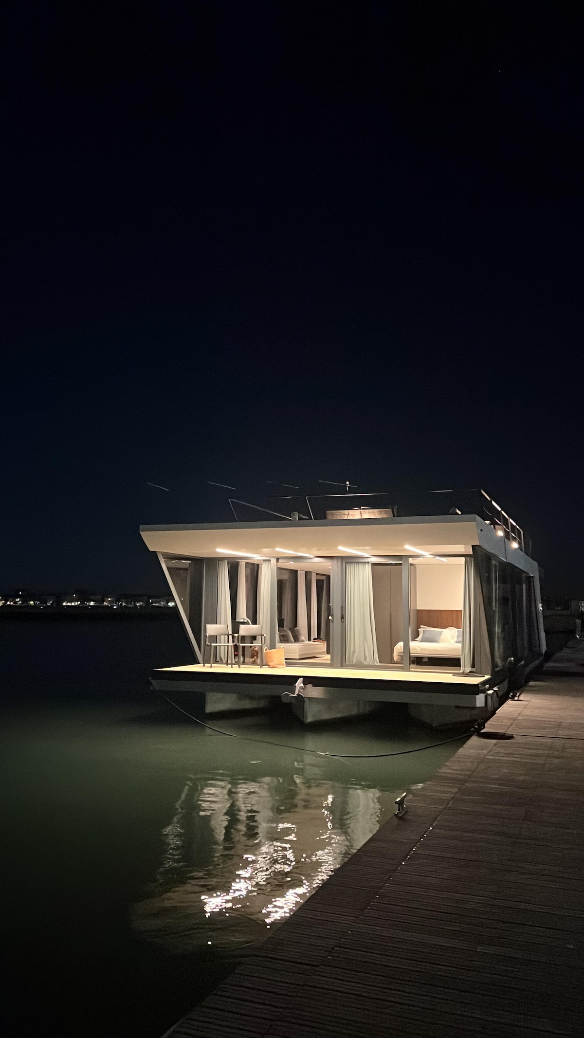 Izbaudiet peldošo māju Miramare ar gaisa kondicionētāju, uzņemot līdz 6 viesiem. Ļaujieties mierīgajam dzīves ritmam jūrā. Māja ietver pilnībā aprīkotu virtuvi, mājīgu dzīvojamo zonu ar dīvāngultu un ēdamgaldu, divas guļamistabas un vannasistabu. Uzkāpiet uz terases, kur gaida āra mēbeles, sauļošanās krēsli un burbuļvanna, uz kura paveras burvīgs skats uz jūru. Jūsu mājoklī ir gultasveļa, dvieļi, šķidro kristālu televizors un bezmaksas Wi-Fi. Laipni lūdzam!