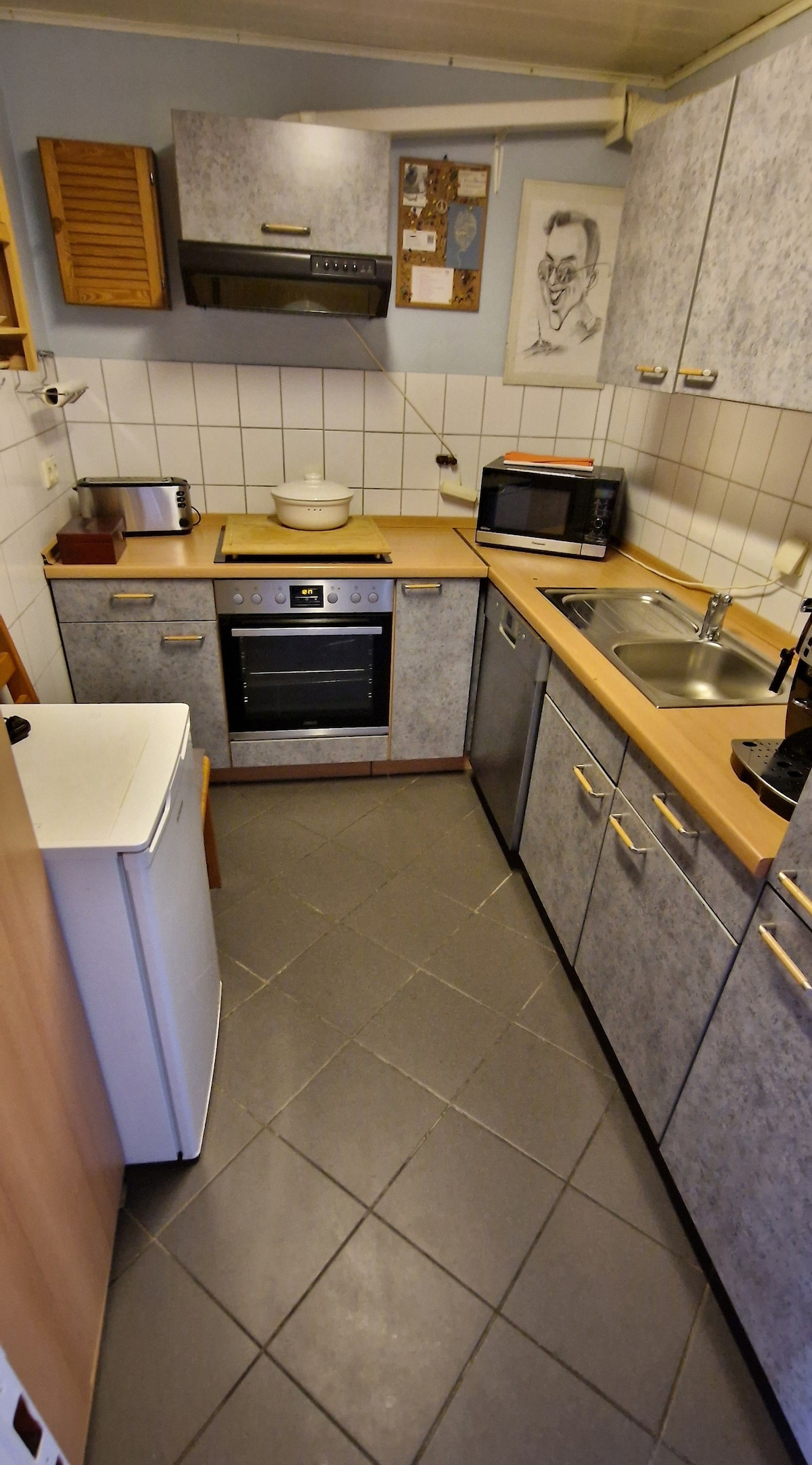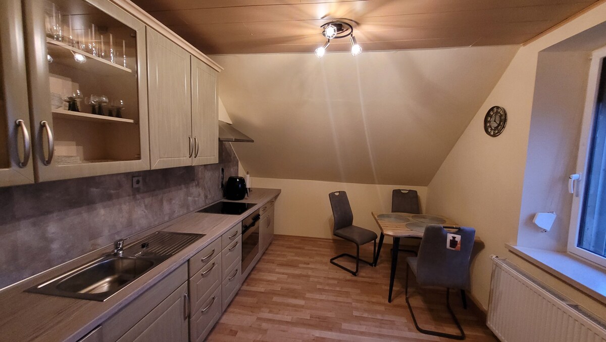 Sākotnējās saimniecības bijušo draudzi mēs ar mīlestību esam pārveidojuši par plašu mansarda dzīvokli. Dzīvoklis, kas iebūvēts divslīpē, izstaro ļoti īpašu šarmu. 75 m² lielajā dzīvoklī ir guļamistaba ar divguļamo gultu un bērnu gultiņu un liela dzīvojamā istaba ar atvērtu, pilnībā aprīkotu virtuvi. Modernajā vannasistabā ir dušas kabīne ar apsildāmām sienām.