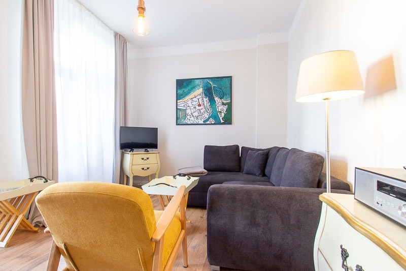 Zentrale Wohnung im 2. Stock, 60 qm, direkt am Kurpark. Prommenade, Strand und Hafen sind bequem in wenigen Gehminuten (800 m) erreichbar. Markt und Kirche, Restaurants, Cafes, Einkaufsmöglichkeiten sind in direkter Nähe. Stabilies Wlan ( 100 MB upload) Hunde sind willkommen, Aufpreis bitte erfragen. Private Aufenthalte sind ab 30 Tagen, berufliche Aufenthalte ab 3 Tagen (Seminare, Arbeiten, Fortbildung, Kollegen-Treffen, Berufspraktikanten, Auszubildende, Studierende.. ) buchbar.