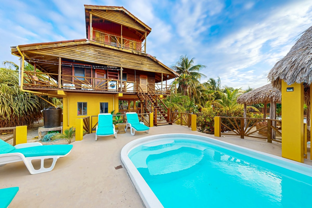 Izcila luksusa naktsmītne vidē, kas ir otrajā vietā. Netraucēti skati uz Karību jūras reģionu un Caye Caulker no gandrīz visiem logiem, kā arī uz savu baseinu. Atpūtieties vai veiciet masāžu piestātnē Palapā vai baudiet grilu pludmalē Palapa. Sēdiet ar pirkstgaliem smiltīs, cepot zefīrus virs uguns. Peldieties piestātnē vai savā saldūdens baseinā - lēmums ir jūsu ziņā. Iekļauti kajaki, SUP un snorkelēšanas aprīkojums. Laipni lūdzam Pludmales debesīs.