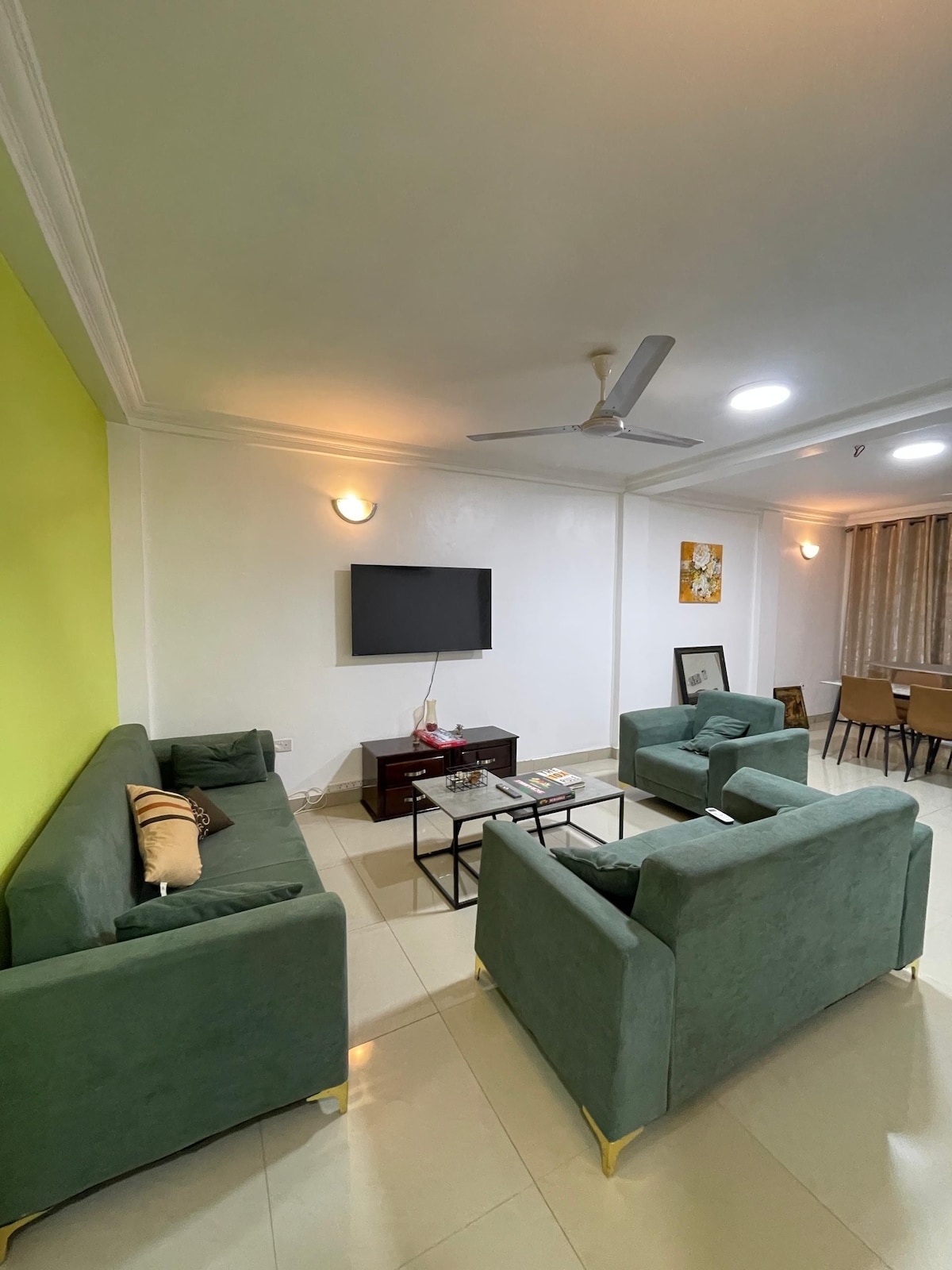 Have fun with the whole family at this serene stylish flat. This simple clean 3-bedroom suite in Kumasi, features a luxury 3 bathrooms, modern kumasi architecture, and prime location just 10 minutes from Kumasi Airport. Enjoy the convenience of private parking, free WiFi, a 55" Smart TV, and 3 smart TVs in all rooms, open kitchen and dining. With a backup power plant, professional team, and 24/7 strict security, your comfort is our priority.