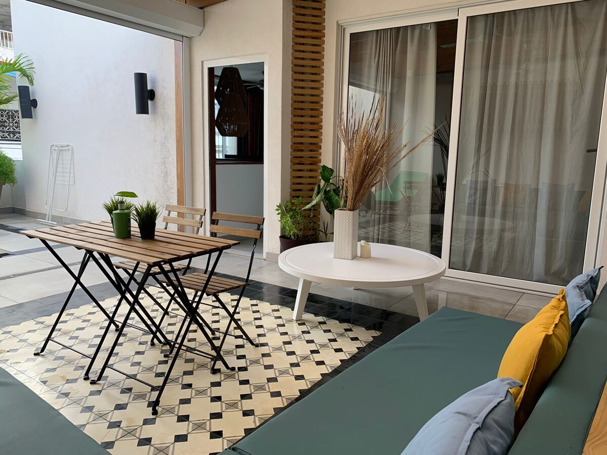 "Atklājiet mieru un stilu šajā mūsdienīgajā mājoklī, piedāvājot klusu un mājīgu vidi, kas ir ideāli piemērota atpūtai. Dzīvojamā istaba ir aprīkota ar ērtu dīvānu un modernu dekoru. Vannasistabas iekšpusē un ārpusē ir grezna atpūtas vieta ar tumšām flīzēm un platu dušu. Izbaudiet dabisko apgaismojumu un skatu uz mierīgu iekštelpu terasi, kas ir ideāli piemērota rīta kafijai vai pēcpusdienas lasīšanai. Nāciet un izbaudiet unikālu piedzīvojumu mājoklī, kas veidots ar mīlestību un stilu."