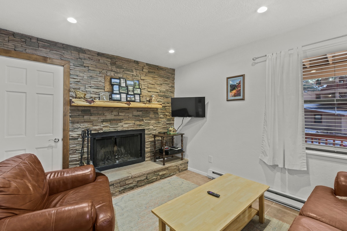 Pārveidots tikai pagājušajā gadā! Noteikti būsiet lieliskākais dzīvoklis Angel Fire! 😎 Šī jautrā tikšanās vieta atrodas Pinetree Commons kompleksa mežā. Tas atrodas tikai 2 kvartālu attālumā no AF kūrorta. Tuvu slēpošanai, riteņbraukšanai, pārgājieniem, golfam un daudz kam citam! Paņemiet dzērienu un baudiet vienu no 2 āra balkoniem vai omulīgi iekārtojieties pie ugunskura. Interjers ir jautrs un aicinošs... ar eklektiskām freskām un dekoru, kas piedāvā citu pieredzi nekā šajā reģionā! Ideāli piemērots ģimenēm/draugu grupām! 😊