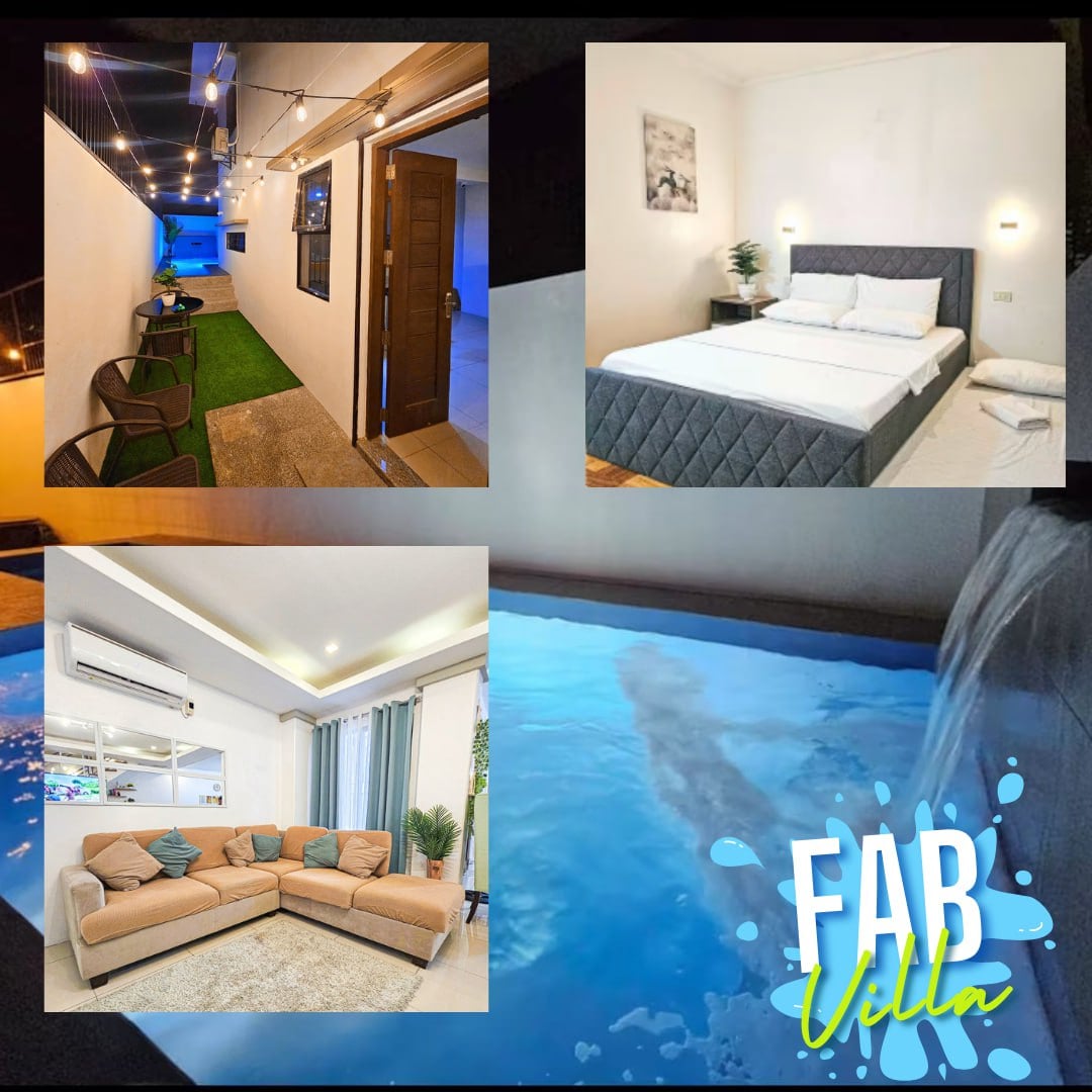 Jūsu ekskluzīvā vieta ar skaistu dārzu un pilna izmēra peldbaseinu. ✔️ 15 minūšu attālumā no Aqua Planet ✔️ 8 minūšu attālumā no SM Clark ✔️ 10 minūšu attālumā no Klārka starptautiskās lidostas ✔️ Vārtu īpašums ar diennakts apsardzi ✔️ Ātrgaitas internets līdz 75 mb/s ✔️ Viedtelevīzija ar BEZMAKSAS NETFLIX ✔️ Minibārs, kafijas automāts, ledusskapis un mikroviļņu krāsns ✔️ Pulvera istaba un āra duša ✔️ Peldbaseins (4 pēdas līdz 8 pēdām)