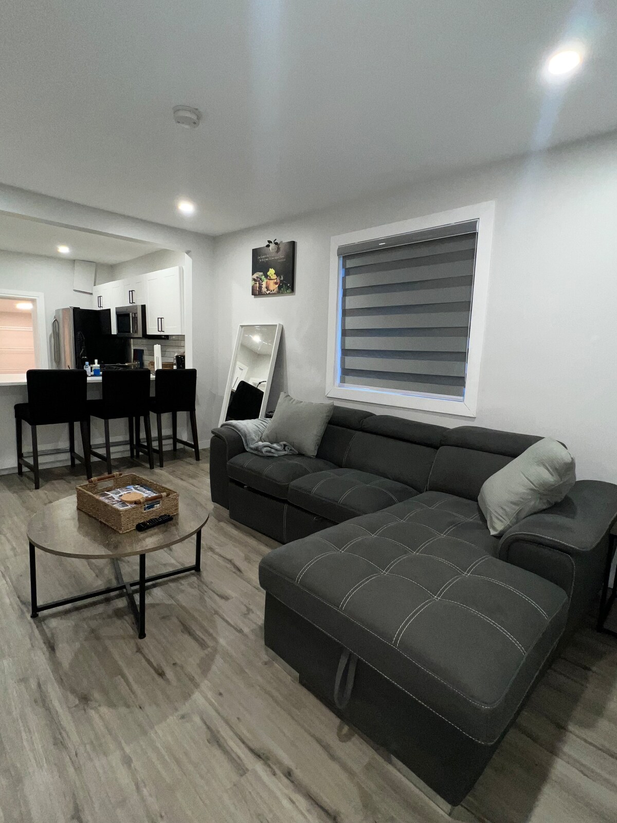 Meklējat atpūtas vietu, privātu, klusu un mierīgu mājokli! 1 guļamistabas pagraba dzīvoklis ar virtuves pusi, kurā ir ledusskapis, mikroviļņu krāsns, tējkanna, kafijas darītava, galda piederumi, kā arī pamata servēšanas piederumi jūsu lietošanai. Istaba ir aprīkota ar regulējamu lasīšanas galdu un krēslu, skrejceliņu vingrošanai un divguļamo gultu, kas ir silta un mājīga, lai nodrošinātu nevainojamu miegu. Ir pieejami svaigi/tīri dvieļi. Tas atrodas mierīgā pilsētas vidē ar funkcionālu tranzīta autobusu sistēmu.