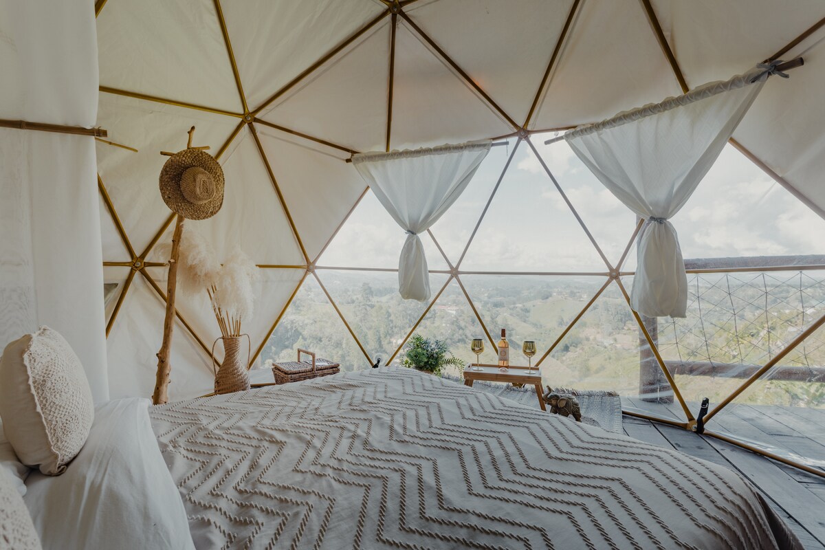 Privāts glempinga domo ar neierobežotu burbuļvannu, iekļautām brokastīm un sagaidīšanas kokteili🍹. Dabas un iespaidīgu skatu ieskauta, tikai 10 minūšu attālumā no Medeljinas. Lieliski piemērots romantiskai atpūtai, jubilejām, dzimšanas dienām vai pilnīgam pārtraukumam. Šeit ir vannasistaba, ko ieskauj bambu, grila zona, Wi-Fi, papildērtības un īpašs interjers. Izbaudiet ekskluzīvu un relaksējošu piedzīvojumu, ko zina tikai daži. Rezervējiet jau šodien un nodrošiniet datumu, pirms to izdarīs kāds cits! Tikai vismaz 18 gadus veciem.