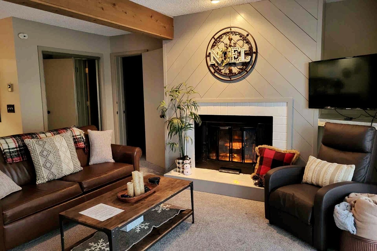 Lielisks ceļojums 1-4 viesiem! Schuss Mountain piedāvā dažādus ziemas sporta veidus, golfa laukumus un tuvumā esošās atrakcijas. Šajā mājīgajā pirmā stāva dzīvoklī ir viss, kas nepieciešams ērtai dzīvošanai: *gultasveļa UN dvieļi tualetes piederumi *veļas mazgātava dzīvoklī *pilnībā aprīkota virtuve *kafija/tēja/sidrs/kakao *ātrs Wi-Fi *televizors viesistabā un guļamistabā *Netflix *Elektriskais kamīns *Schuss iekštelpu baseins un burbuļvanna (sezonāla) *Āra baseins tieši ārā (parasti piemiņas dienas nedēļas nogale - Darba svētku nedēļas nogale)