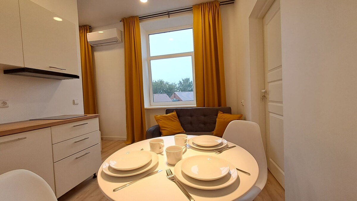 Desmit minūšu gājiena attālumā no Anykšču pilsētas sirds šis 33 kv.m. dzīvoklis atrodas klusā apkārtnē priežu meža ielokā. 2020. gadā pilnībā renovētā uz dienvidiem vērstā studija ir mājīga atpūta pārim. Matracis ar kabatas atsperi un satīna gultasveļa ļauj labi atpūsties naktīs, savukārt pilnībā aprīkotā virtuve un ēdiena gatavošanas pamataprīkojums ir noderīgs pēc piecelšanās. Salokāms galds uz balkona nodrošina saulainas pusdienas vai romantisku vakaru.
