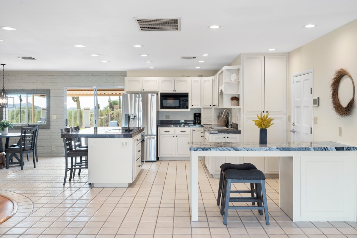 Laipni lūdzam jūsu oāzes atpūtas vietā Arizonas tuksnesī. Satriecošs skats uz Superstīšena kalniem un ideāla vieta pārgājieniem, laivošanai vai kāzu apmeklēšanai tuvumā. Jums būs pieejama visa māja ar 3 guļamistabām/2 vannasistabām 1,25 akru platībā ar privātu baseinu (pēc pieprasījuma var tikt apsildīts). Mājā var ērti nakšņot 8 cilvēki (1 divguļamā gulta “King” un 3 divguļamās gultas “Queen”), katrā istabā ir viedtelevizori un ātrs Wi-Fi. Ar satriecošiem skatiem un visām mājas ērtībām – šīs otrās mājas ir ideāla vieta, kur atpūsties un relaksēties!