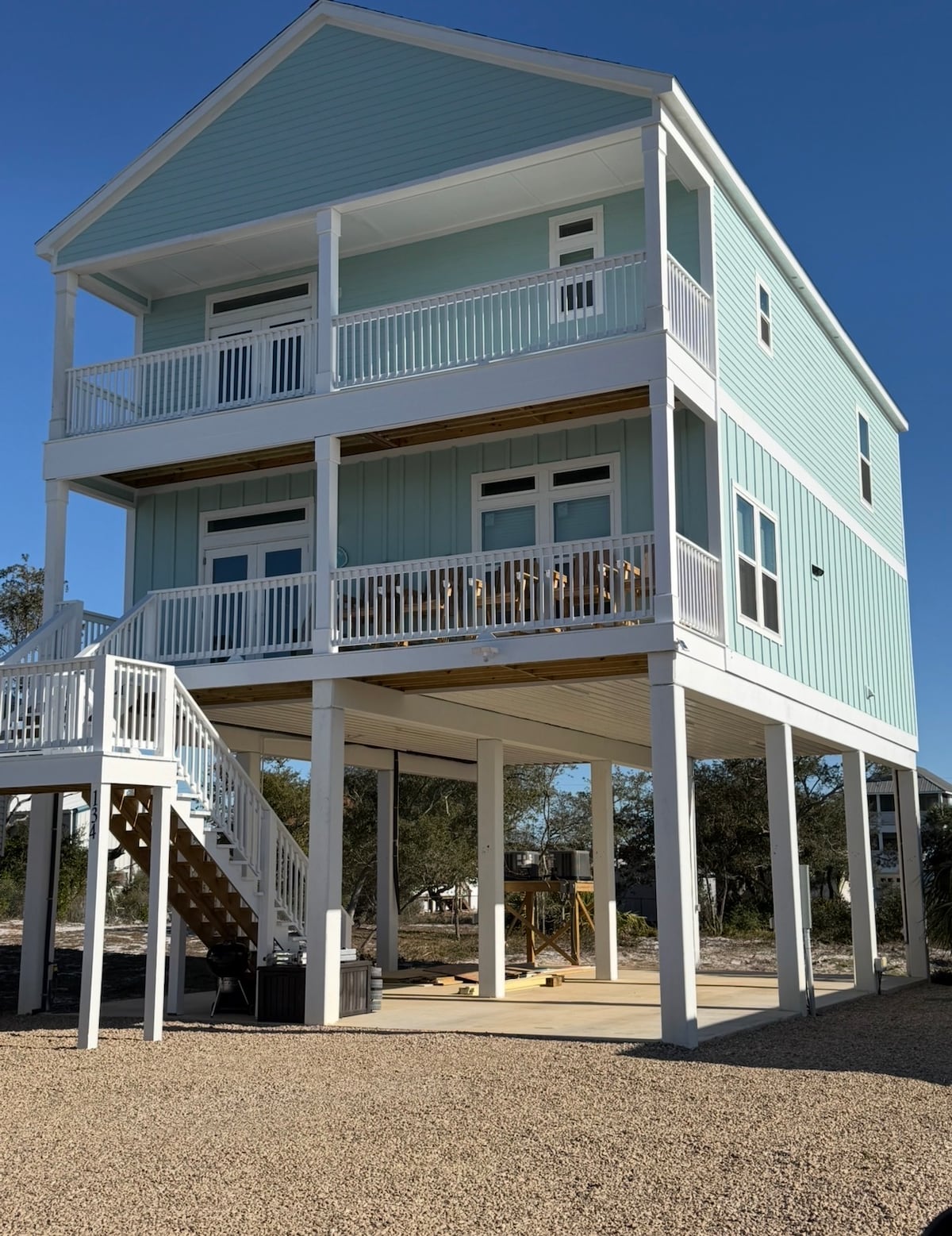 New Beach Front Listing! Ideal location directly on The Gulf close to "The Cape", Port St Joe, Indian Pass, & Apalachicola! Stylishly renovated space for your family to enjoy. 2 bedrooms and a loft area with a cute spiral staircase adding lots of unique character. Enjoy your beach sunrise/sunset, endulge in a beach side fire and catch the views of horses walking on the shoreline. Partake in the outdoor and indoor games & activities provided by your hosts. Just pack your bags & enjoy paradise!