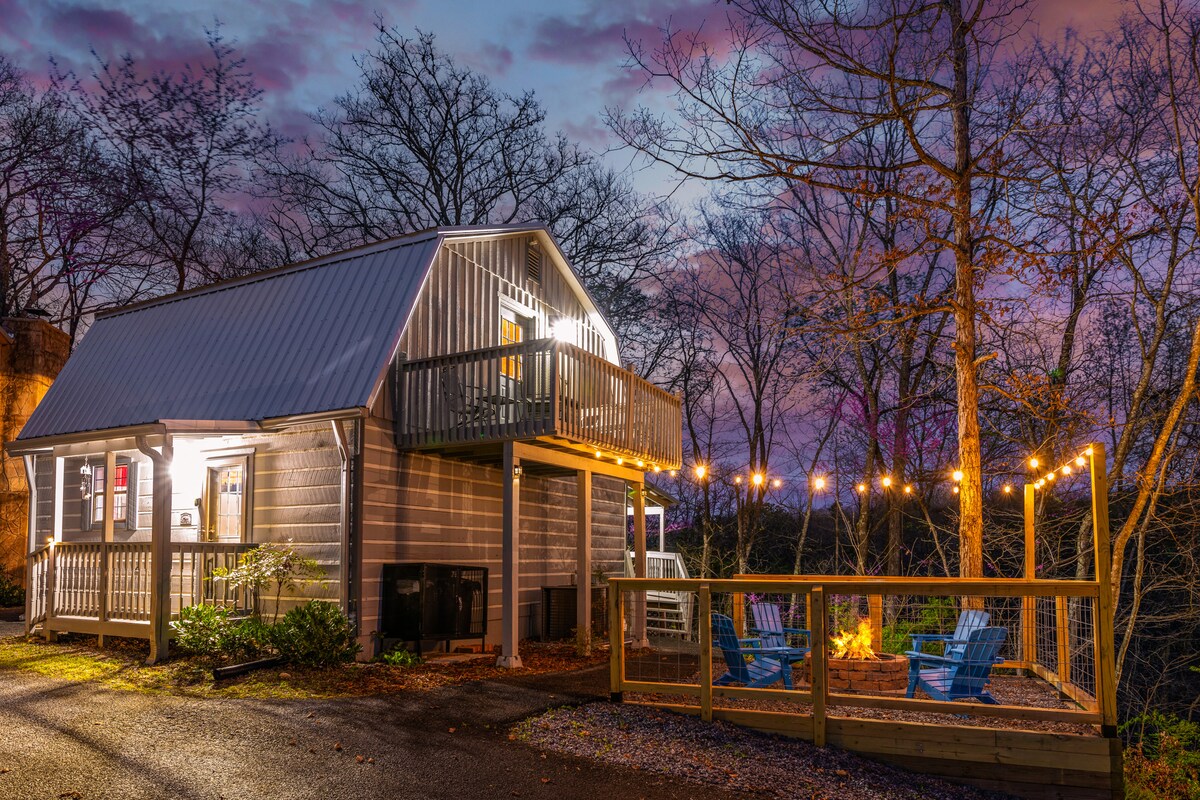 Šim mājīgajam namiņam nav biedējošu kalnu ceļu! Atrodas Pin Oak Resort nelielajā namiņu kopienā. Mūsu namiņš atrodas pašā Pigeon Forge centrā un nodrošina komfortu, atpūtu un vietu, kur aizbēgt. Ideāli piemērots 4 cilvēku ģimenei. Mūsu mājīgajā namiņā ir karalienes guļamistaba apakšstāvā un atvērta lofta "Queen" guļamistaba augšstāvā, 2 pilnībā aprīkotas vannasistabas (vienstāva dušas), virtuve, privāta burbuļvanna un kopienas baseins (sezonāli atvērts no 15. maija līdz 15. augustam). Atvainojiet, mīļdzīvnieki/dzīvnieki nav atļauti.