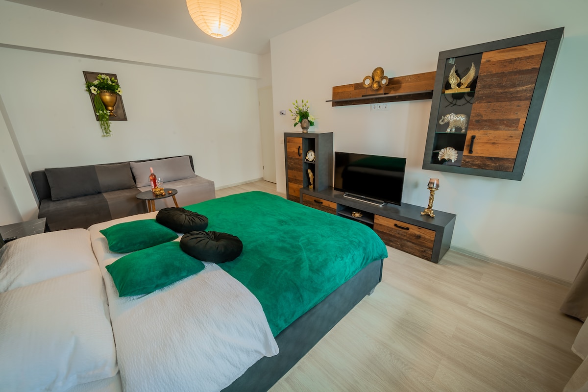 Laipni lūdzam Boholand Apartment! ✨ Ieejiet modernā un pārdomāti iekārtotā telpā, kurā apvienojas komforts, miers un privātums, lai radītu ideālu mājokli. Neatkarīgi no tā, vai apmeklējat Brašovu atpūtas vai darījumu braucienos, jūs izbaudīsiet viedās papildērtības, piemēram, veļas mazgājamo mašīnu, vertikālu drēbju tvaika katlu, lai jūsu apģērbs būtu svaigs, un ātrs Wi-Fi, lai uzturētu sakarus. Ideāli piemērots patstāvīgiem ceļotājiem, pāriem vai attālinātiem darbiniekiem. Rezervējiet ceļojumu un jūtieties kā mājās jau no ierašanās brīža!