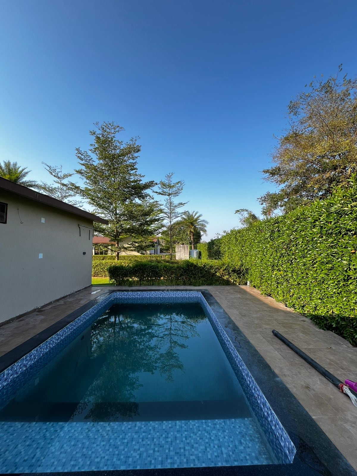 Welcome to "The Bougainvillea" – a modern farmhouse oasis surrounded by lush greenery. This exquisite villa offers a blend of contemporary design and natural beauty. Spacious, light-filled rooms with modern amenities for a luxurious stay. A large lawn space and a sparkling pool create a perfect outdoor retreat. Fully equipped kitchen, comfortable living areas, and modern conveniences.