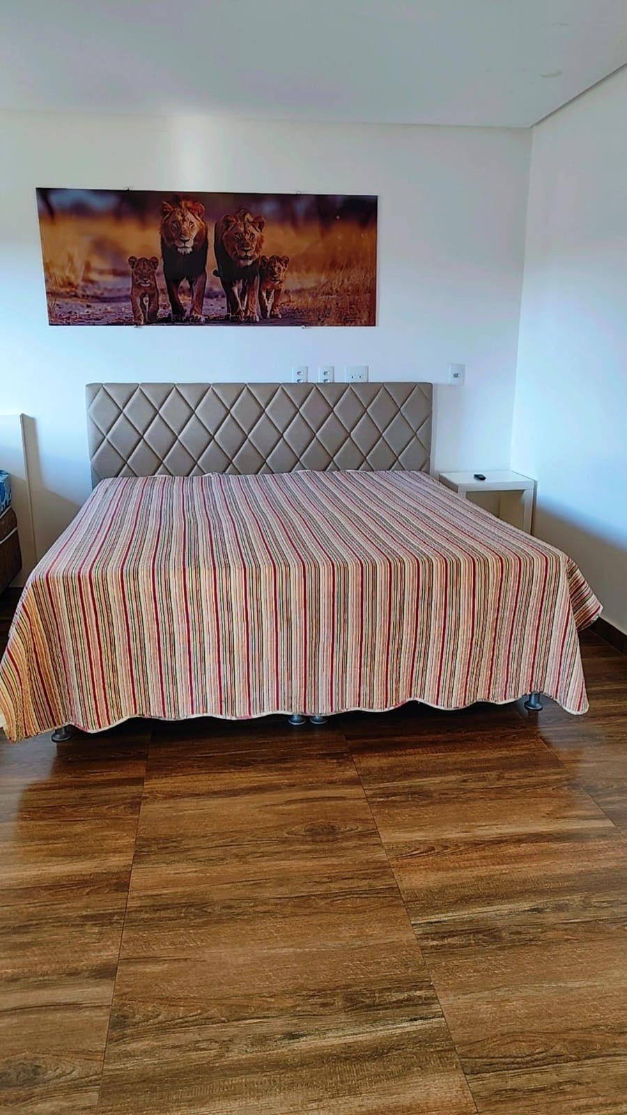 Suíte ampla e arejada, cama tamanho padrão.