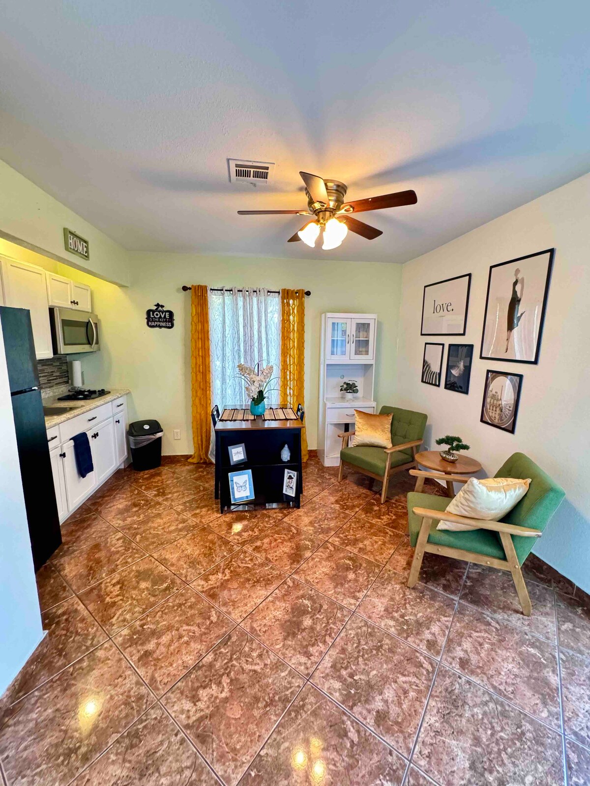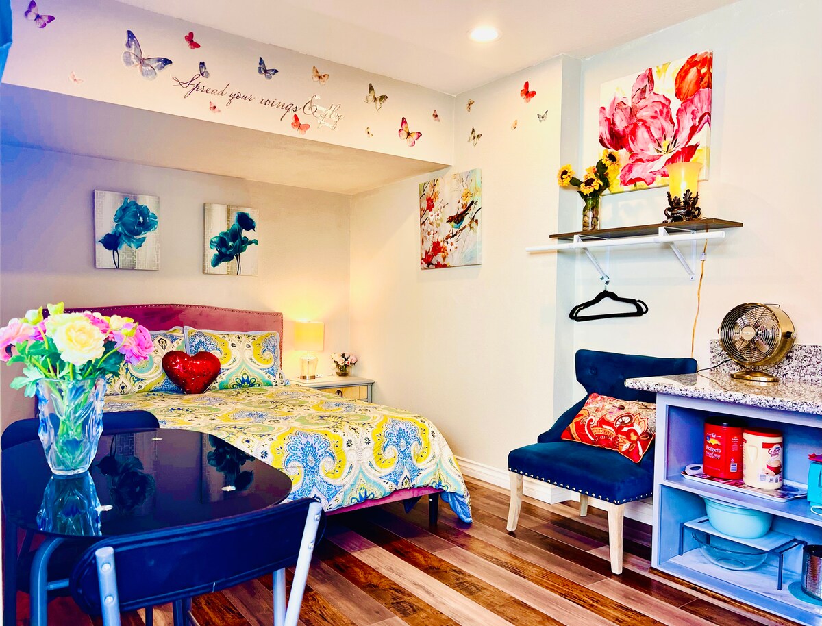 Laipni lūdzam šajā mājīgajā viesu apartamentā Lasvegasā, kas atrodas Lasvegasas centrā, netālu no visa, 2 jūdžu attālumā no joslas. Mēs tikko uzstādījām pavisam jaunu mini sadalīto HVAC iekārtu, lai jūs varētu ērti uzturēties. Viesu apartamentos ir pilna virtuvīte ar virtuves piederumiem, pilna vannasistaba, kā arī viedtelevīzija, bezvadu lādētājs un ātrgaitas Wi-Fi, lai sniegtu jums vislabāko pieredzi. Šajā studijā ir privāta ieeja un bezmaksas stāvvieta uz ielas
