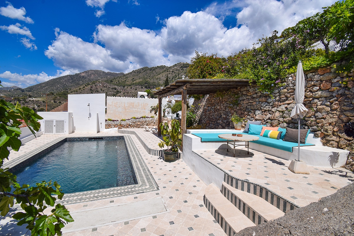 Šī ir skaista maz nesen atjaunota lauku māja Andalūzijas Almijara kalnu pakājē, ko projektējis, iekārtojis un dekorējis tēlnieks un viņa sieva. Ir 9m garš 1.2m plats & 60cm dziļš plunge-pool atdzist, kas ir noteikts nogrimušā dārzā, skats uz ziemeļiem un balto kalnu ciematā Frigiliana & Nerja krastā.
