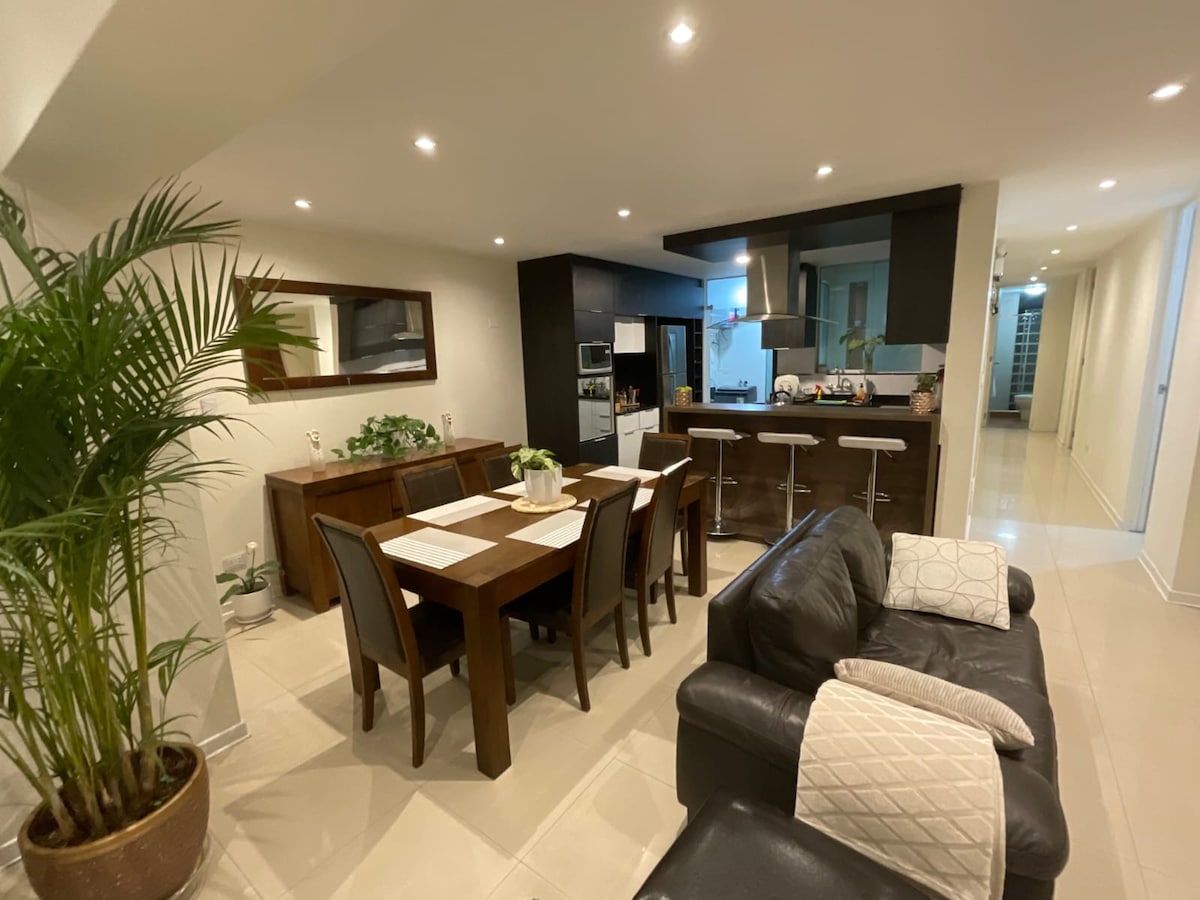 Skaists dzīvoklis 4. stāvā, labākais skats uz Boloņas aleju, klusa vieta, kas atrodas tradicionālajā Yanahuara rajonā 10 minūšu gājiena attālumā no pilsētas vēsturiskā centra, 5 minūšu gājiena attālumā no Yanahuara laukuma un 10 no tirdzniecības centriem un bankām. 3 ērti numuri ar karalienes gultu, privātu, ģimenes un sociālo vannasistabu, rakstāmgaldu, brokastu virtuvi, terasi, ēdamistabu un balkonu virzienā uz avēniju un Club Inter. Pēcpusdienā no balkona jūs dzīvosiet dabā ar papagaiļu un zaļo zonu.