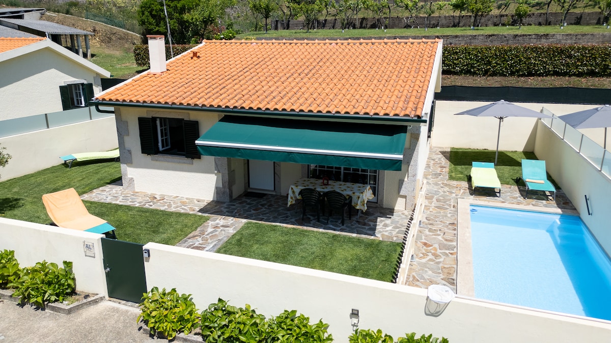 Istabas ar divguļamo gultu + bērnu gultiņu (pēc izvēles) wi-Fi, grils, privāts baseins, terase, terase un privāta autostāvvieta, 7 minūšu attālumā no pludmalēm un 5 minūšu attālumā no Azenhas de Vilar de Mouros Nāciet un izbaudiet šo skaisto un paradīzes vietu, izbaudiet pilsētas komfortu, lauku šarmu, starp kalnu grēdu, upi un jūru, vēsturiska reģiona interjerā!