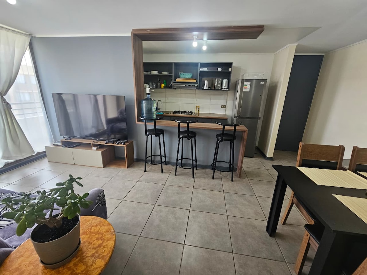 Mājīgs mini interjera dzīvoklis ir pilnībā mēbelēts ar kustību pie durvīm, kas ir ideāli piemērots cilvēkam vai pārim, kas meklē komfortu un praktiskumu. Tam ir: -27 kvadrātmetri pārdomāti sadalītas telpas. - Wi-Fi - Istaba ar divvietīgu gultu un skapi - Ūdens dozators - Darba vieta - Vannasistaba - Virtuve ar visām papildērtībām - Ledusskapis/televizors - Plāna/fēns/gultasveļa Atrodas netālu no: - Miramaras skola - U. de Tarapacá - Sabiedriskais transports pie durvīm