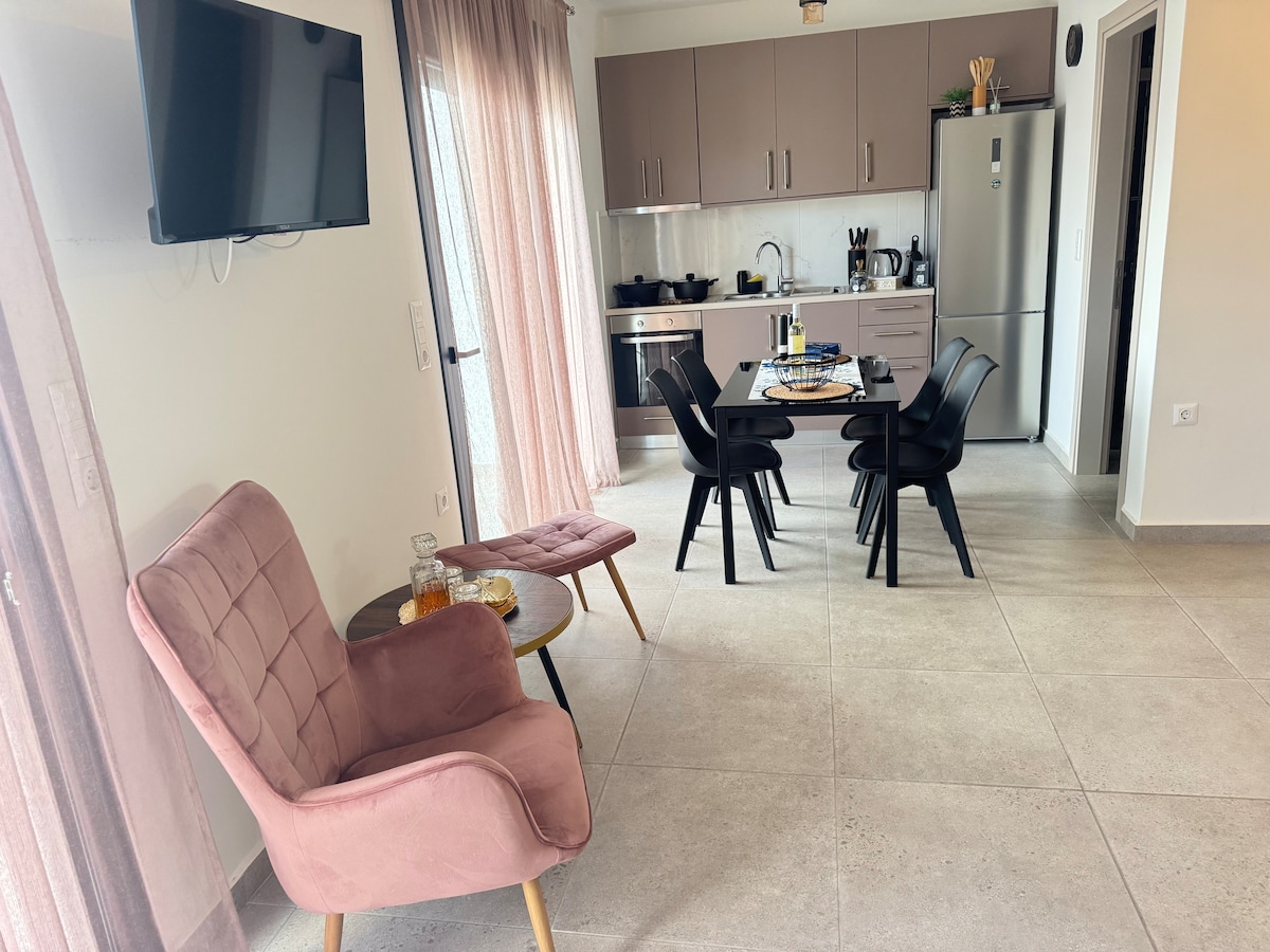 Irene's Cottage Myrtonas ir mierīga kalna virsotnes atpūta, kas ir ideāli piemērota pāriem. Tikai 15 minūšu attālumā no Kyra Panagia pludmales, no tā paveras skats uz jūru, tajā ir liela privāta terase ar grilu, pilnībā aprīkota virtuve, mājīga ēdamistaba/dzīvojamā telpa un tradicionāla Karpathiko gulta ar uzglabāšanas vietu. Ar gaisa kondicionētāju, Wi-Fi un veļasmašīnu tas apvieno komfortu, šarmu un autentisku Karpatu stilu romantiskai un relaksējošai atpūtai.