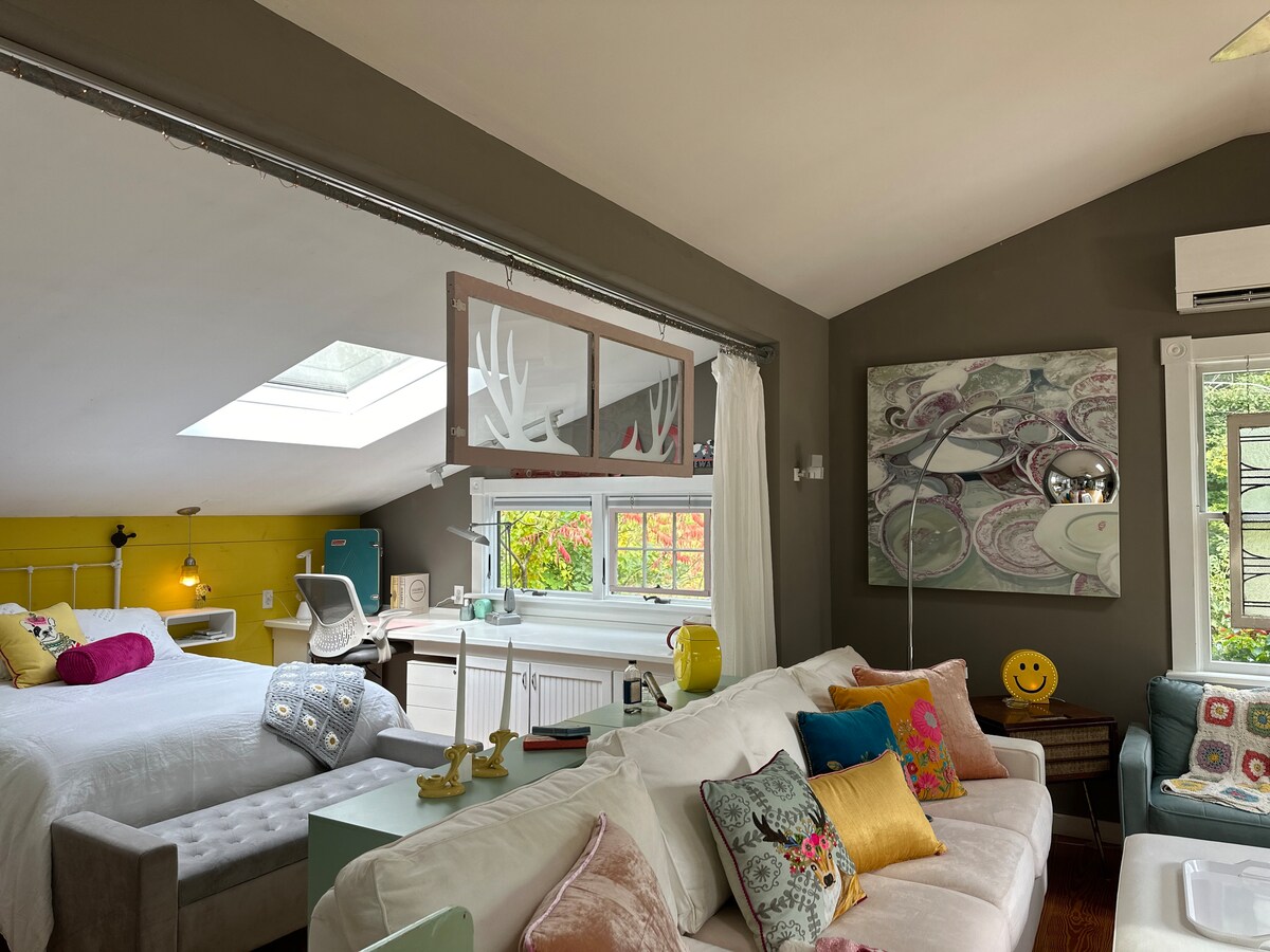 Hygge Loft: gadsimta vidus moderns namiņš, kas atrodas starp 70 akriem privātīpašumā esošā meža ar upēm un pārgājienu takām. Izbaudiet espresso vai vīna malkošanu, klausoties vinila ierakstus, ko ieskauj malkas kamīns. Dodieties pastaigā pa mežu uz upi vai skatieties pie ugunskura uz privātā klāja. Izbaudiet greznu vannu vai pieķerieties īpaši ērtā "king" izmēra gultā ar skatu uz koku galotnēm un debesīm visapkārt. Tā ir vieta, no kuras jūs nekad negribēsiet doties prom!