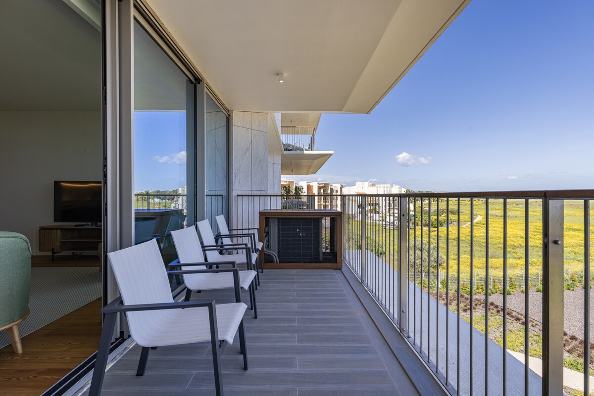1 guļamistabas dzīvoklis Herdade dos Salgados 5 zvaigžņu kūrortā, kas ir ideāli piemērots pāriem ar ne vairāk kā 1 bērnu, kas meklē ērtas un mierīgas brīvdienas dabas, pludmales un golfa tuvumā. Dzīvoklis atrodas otrajā stāvā, tam ir liels balkons (17 m2), milzīga viesistaba (44 m2), lielisks skats uz 7 peldbaseiniem, un tas atrodas kūrortā ar plašām zaļajām zonām (750 palmas un 2500 olīvkoki). Kūrortam ir tieša saikne ar Salgados Golf un pludmali.