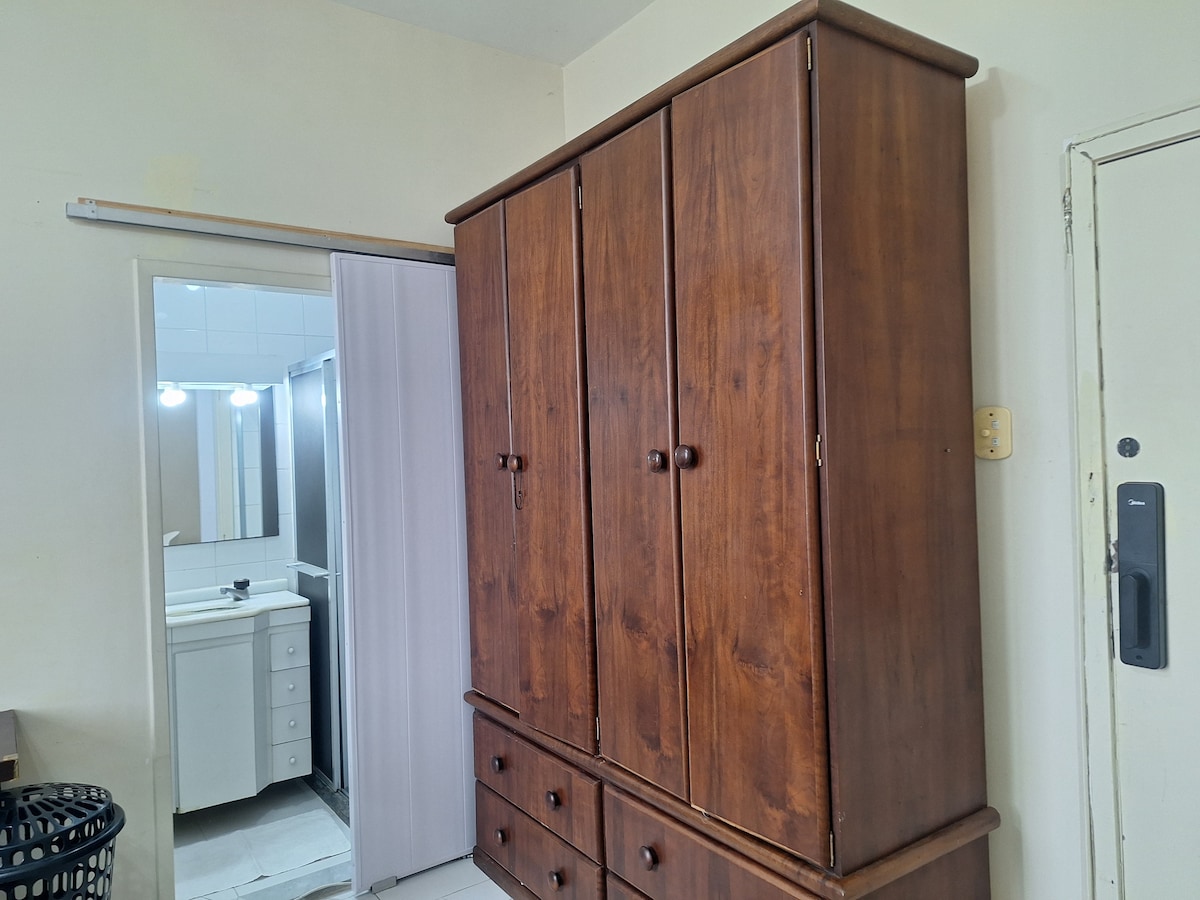 LOFT: (vienkāršs) Kopakabana/Ipanema, Posto 6 galvenā tūrisma zona: 2 min Kopakabanas pludmale, 5 min Ipanema>Arpoador Parque Garota de Ipanema, Pça Gal Osório: hipiju tirgus, daudzi restorāni, bāri, metro, slavenā Kopakabanas krastmala (kur notiek réveillon) kiosks ar dzīvo mūziku, labi rosīga diena un nakts, Kopakabanas forts. Queen izmēra gulta (2 slapjās gultas) un atzveltnes krēsls. 12 gadi, uzņemot viesus ar Airbnb. Pilns klientu atbalsts Laipni lūdzam